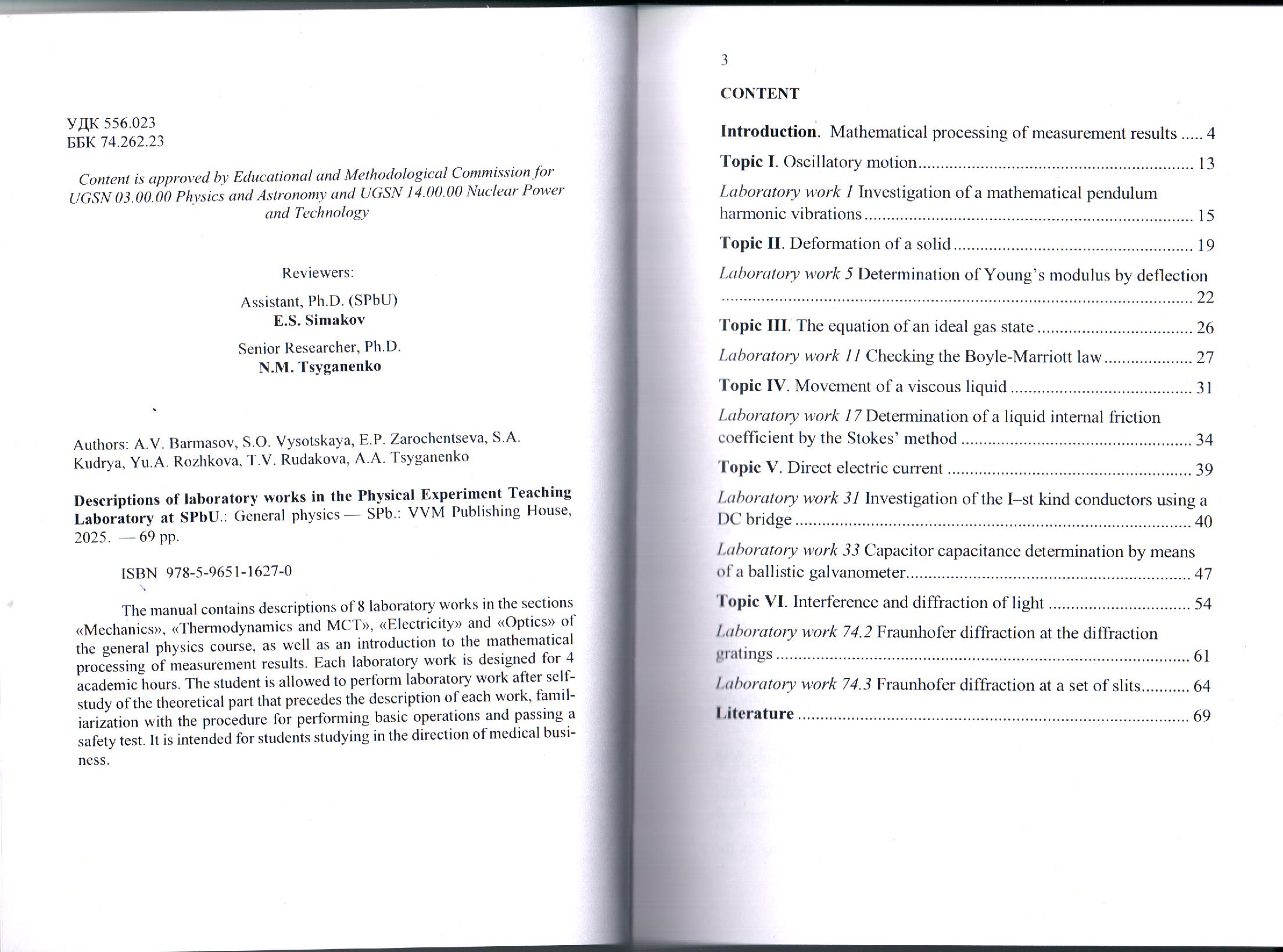 | Translated title of the contribution | Описания лабораторных работ Учебной лаборатории физического эксперимента СПбГУ: Общая физика. Учебно-методическое пособие |