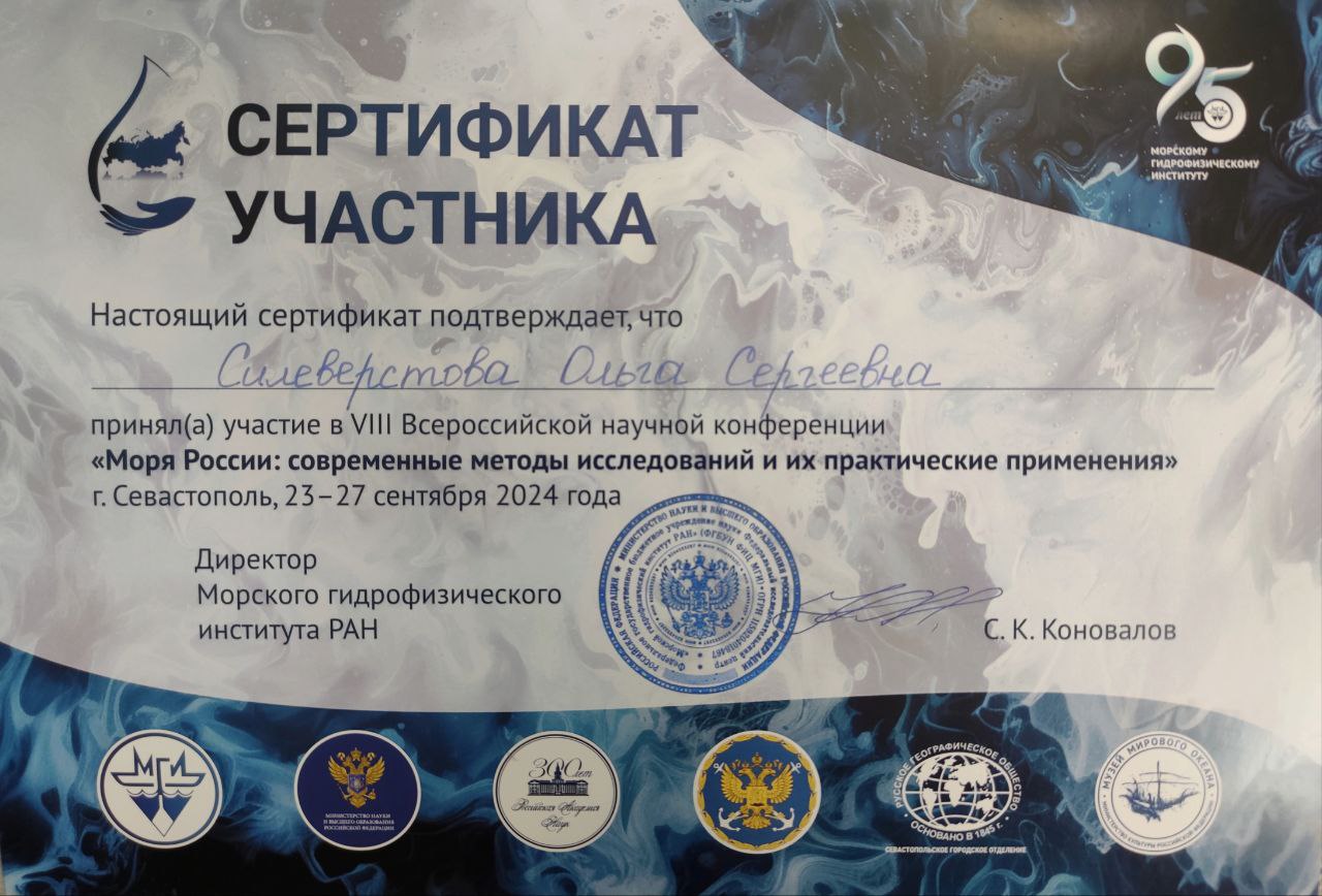 | Заголовок | VIII Всероссийская научная конференция «Моря России: современные методы исследований и их практические применения» |