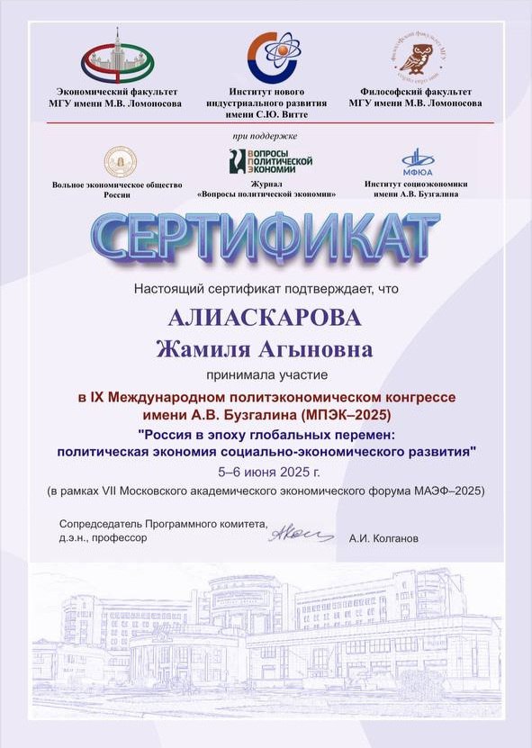 | Заголовок | IX Международный политэкономический конгресс имени А.В. Бузгалина "Россия в эпоху глобальных перемен: политическая экономия социально-экономического развития" |